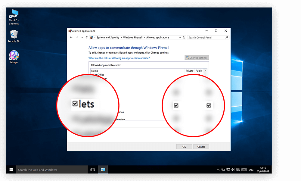 请按照以下步骤找到 Windows 防火墙并允许 LetsVPN 访问网络: